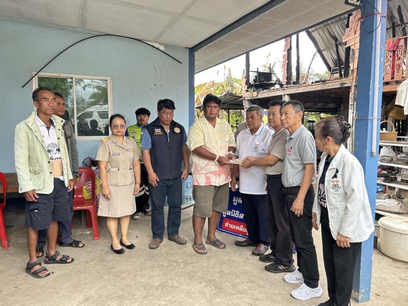 ภาพที่เกี่ยวข้อง วันที่17 พฤศิจกายน พ.ศ.2568 มูลนิธิสว่างสัจยาธรรมสถาน บุรีรัมย์ ปลัดอำเภอบ้านด่าน พร้อมด้วยนายพนาพัฒน์ ชะลุนรัมย์ นายกเทศมนตรีตำบลปราสาท คณะผู้บริหาร หัวหน้าส่วนราชการ และพนักงานเทศบาล ลงพื้นที่เยี่ยมผู้ประสบอัคคีภัย และมอบสิ่งของเพื่อช่วยเหลือเบื้องต้น ให้กับนายสันติ สุขทวี หรืออาจารย์ปลา บ้านมะขามป้อม หมู่ที่ 11 ตำบลปราสาท อำเภอบ้านด่าน จังหวัดบุรีรัมย์ ผู้ประสบภัยดังกล่าว
