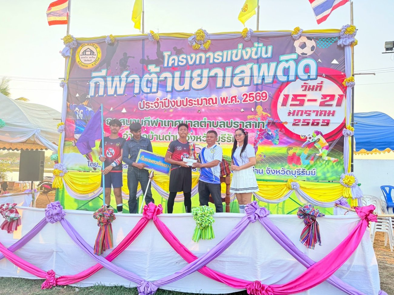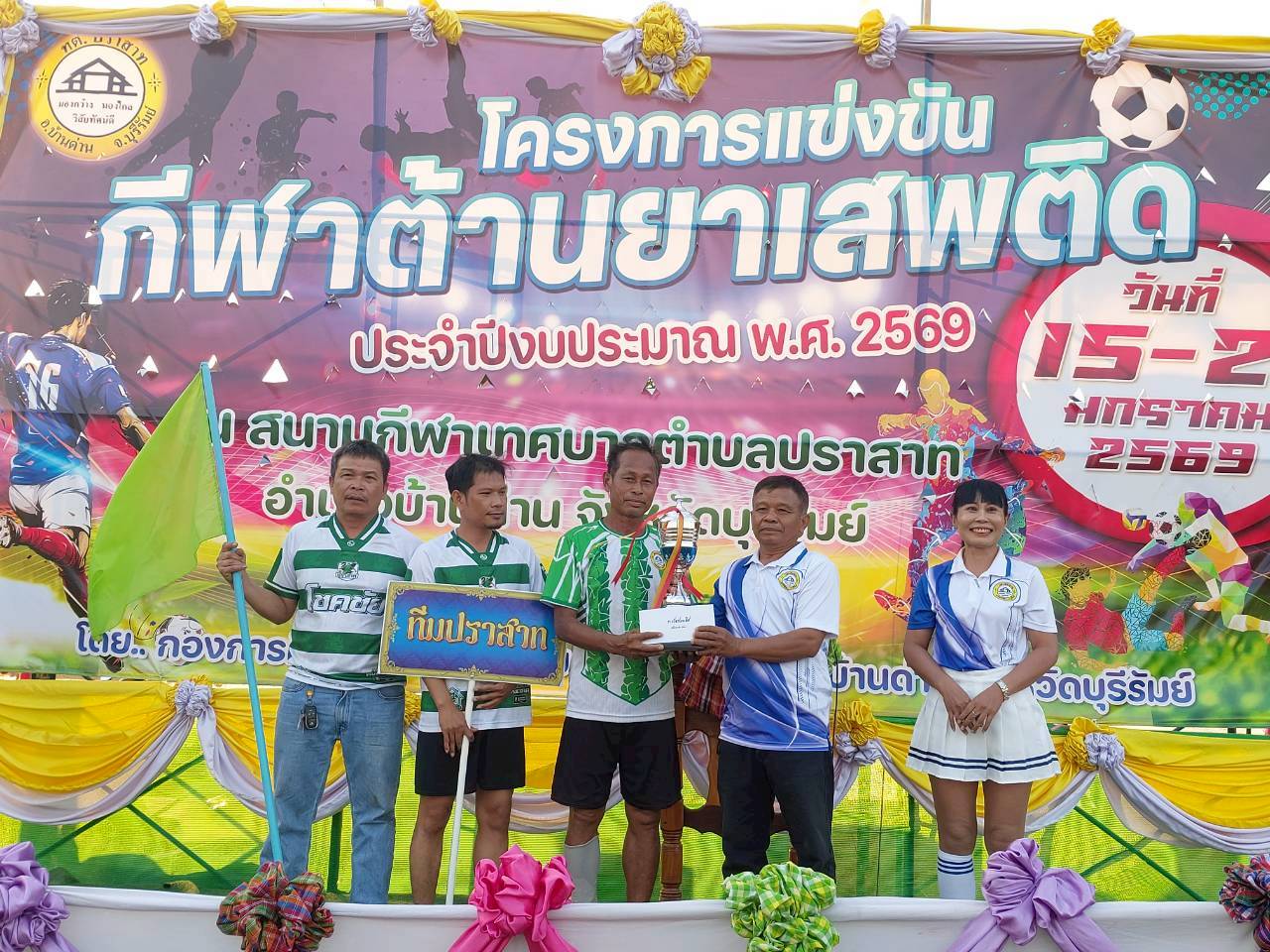 เมื่อวันที่ 21 มกราคม พ.ศ.2569 นายพนาพัฒน์ ชะลุนรัมย์ นายกเทศมนตรีตำบลปราสาท ประธานจัดการแข่งขันกีฬาต้านยาเสพติดตำบลปราสาท ได้กล่าวรายงานผลการดำเนินการจัดโครงการแข่งขันกีฬาต้านยาเสพติด โดย นายกิตติวัฒน์ ปิติเรืองสิทธิ์ รองปลัดเทศบาล ปฏิบัติราชการแทน ปลัดเทศบาลตำบลปราสาท พร้อมด้วยคณะผู้บริหาร สมาชิกสภาเทศบาล หัวหน้าส่วนราชการ พนักงานเทศบาลตำบลปราสาท กำนัน ผู้ใหญ่บ้าน ทั้ง 18 หมู่บ้าน และนักกีฬาตำบลปราสาท ให้เกียรติร่วมพิธีปิด "โครงการแข่งขันกีฬาต้านยาเสพติดตำบลปราสาท ประจำปีงบประมาณ 2569 ในการแข่งขันกีฬาต้านยาเสพติดตำบลปราสาท ประจำปีงบประมาณ 2569 นี้ ในระหว่างวันที่ 15-21 มกราคม 2569 ณ สนามกีฬาเทศบาลตำบลปราสาท อำเภอบ้านด่าน จังหวัดบุรีรัมย์ ซึ่งได้ดำเนินการจัดการแข่งขันเสร็จสิ้นเป็นที่เรียบร้อย และเป็นไปตามวัตถุประประสงค์ทุกประการ
