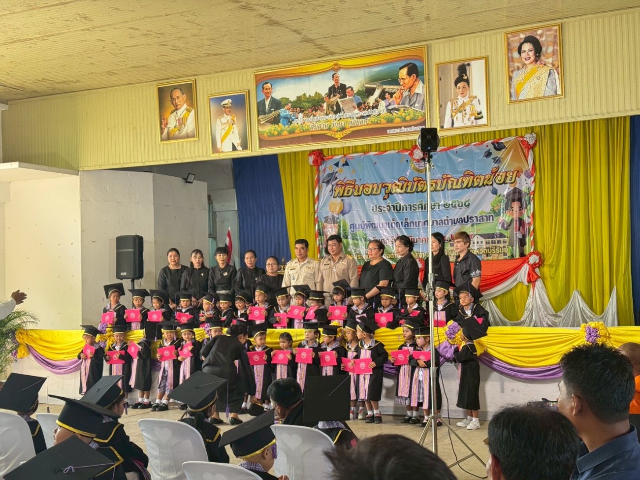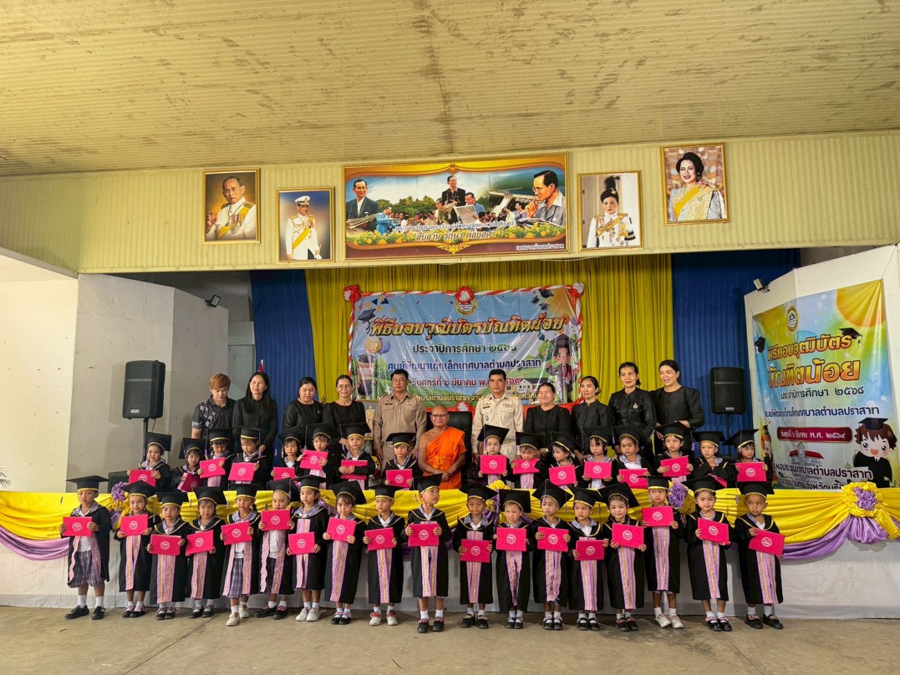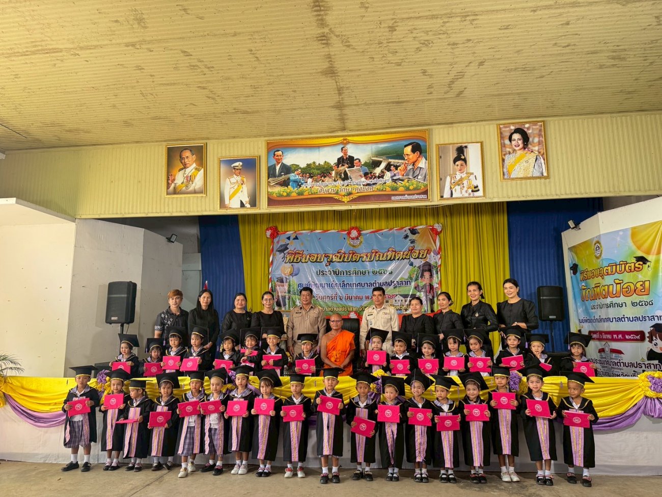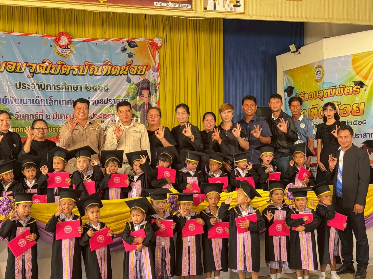 เมื่อวันที่ 6 เดือนมีนาคม พ.ศ.2569 นายพนาพัฒน์ ชะลุนรัมย์ นายกเทศมนตรีตำบลปราสาท พร้อมด้วยคณะผู้บริหาร สมาชิกสภา หัวหน้าส่วนราชการ และพนักงานเทศบาลตำบลปราสาท พิธีมอบวุฒิบัตรบัณฑิตน้อย ศูนย์อบรมเด็กก่อนเกณฑ์วัดบ้านปราสาท และศูนย์พัฒนาเด็กเล็กบ้านมะขามป้อม ประจำปีการศึกษา 2568 ขอแสดงความยินดี กับบัณฑิตน้อยทุกคนที่สำเร็จการศึกษาในระดับปฐมวัย ซึ่งเปรียบเสมือนเป็นบันไดอีกขั้นสู่ความสำเร็จในการศึกษาของเด็กๆ จากนี้ขอให้เด็กๆ จงภูมิใจและตั้งใจในการศึกษาเล่าเรียนในระดับชั้นประถมศึกษาอย่างมีความสุข