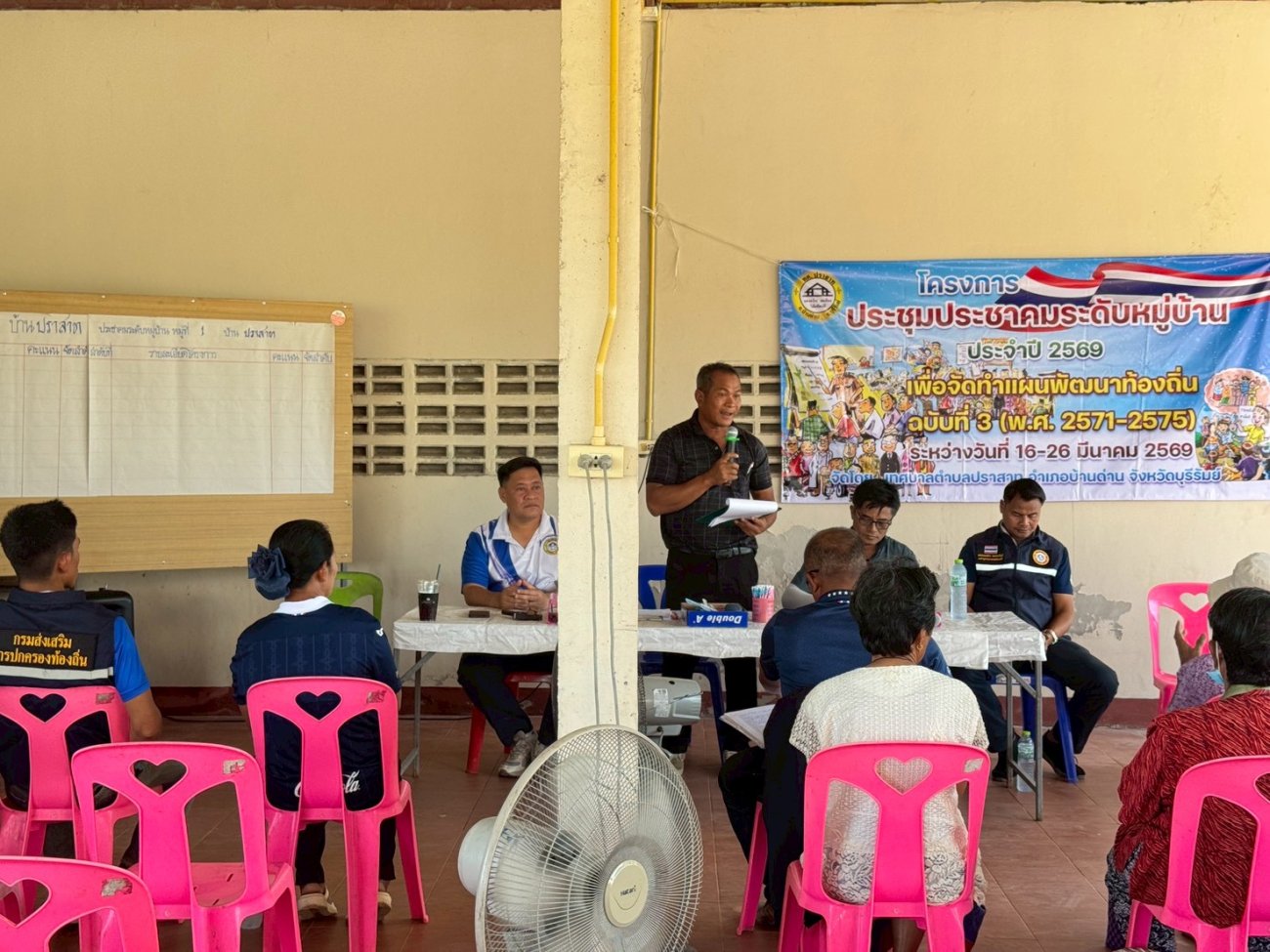 ภาพที่เกี่ยวข้อง วันจันทร์ ที่ 16 เดือน มีนาคม พ.ศ.2569 เทศบาลตำบลปราสาท นายพนาพัฒน์ ชะลุนรัมย์ นายกเทศมนตรีตำบลปราสาท มอบหมาย นายชนะโชติ แสงรัมย์ รองนายกเทศมนตรีตำบลปราสาท พร้อมด้วยคณะผู้บริหาร สมาชิกสภาเทศบาล หัวหน้าส่วนราชการ เจ้าหน้าที่เทศบาลตำบลปราสาท ลงพื้นที่เพื่อจัดทำโครงการประชาคมระดับหมู่บ้าน ประจำปี 2569 เพื่อจัดทำแผนพัฒนาท้องถิ่น ฉบับที่ 3 (พ.ศ. 2571 - 2575) ระหว่างวันที่ 16- 26 มีนาคม 2569 โดยในวัน 16 มีนาคม พ.ศ.2569 ช่วงเช้า ประชาคมหมู่บ้าน หมู่ที่ 1 บ้านปราสาท ช่วงบ่าย ประชาคมหมู่บ้าน หมู่ที่ 2 บ้านปราสาท
