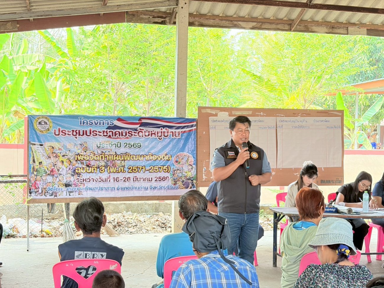 ภาพที่เกี่ยวข้อง วันพฤหัสบดี ที่ 26 เดือน มีนาคม พ.ศ.2569 เทศบาลตำบลปราสาท นำโดยนายพนาพัฒน์ ชะลุนรัมย์ นายกเทศมนตรีตำบลปราสาท พร้อมด้วยคณะผู้บริหาร สมาชิกสภาเทศบาล หัวหน้าส่วนราชการ เจ้าหน้าที่เทศบาลตำบลปราสาท ลงพื้นที่เพื่อจัดทำโครงการประชาคมระดับหมู่บ้าน ประจำปี 2569 เพื่อจัดทำแผนพัฒนาท้องถิ่น ฉบับที่ 3 (พ.ศ. 2571 - 2575) ระหว่างวันที่ 16- 26 มีนาคม 2569 โดยในวัน 25 มีนาคม พ.ศ.2569 ช่วงเช้า ประชาคมหมู่บ้าน หมู่ที่ 16 บ้านเกษตรพัฒนา ช่วงบ่าย ประชาคมหมู่บ้าน หมู่ที่ 17 บ้านหนองสะแก