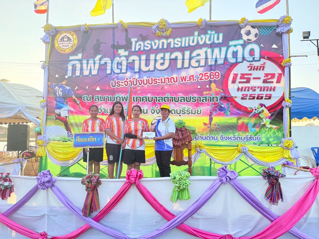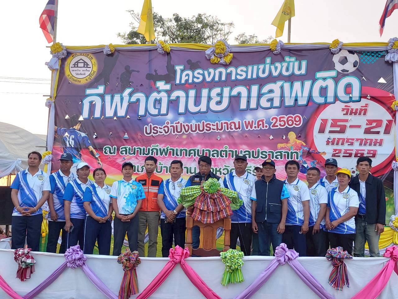 เมื่อวันที่ 21 มกราคม พ.ศ.2569 นายพนาพัฒน์ ชะลุนรัมย์ นายกเทศมนตรีตำบลปราสาท ประธานจัดการแข่งขันกีฬาต้านยาเสพติดตำบลปราสาท ได้กล่าวรายงานผลการดำเนินการจัดโครงการแข่งขันกีฬาต้านยาเสพติด โดย นายกิตติวัฒน์ ปิติเรืองสิทธิ์ รองปลัดเทศบาล ปฏิบัติราชการแทน ปลัดเทศบาลตำบลปราสาท พร้อมด้วยคณะผู้บริหาร สมาชิกสภาเทศบาล หัวหน้าส่วนราชการ พนักงานเทศบาลตำบลปราสาท กำนัน ผู้ใหญ่บ้าน ทั้ง 18 หมู่บ้าน และนักกีฬาตำบลปราสาท ให้เกียรติร่วมพิธีปิด "โครงการแข่งขันกีฬาต้านยาเสพติดตำบลปราสาท ประจำปีงบประมาณ 2569 ในการแข่งขันกีฬาต้านยาเสพติดตำบลปราสาท ประจำปีงบประมาณ 2569 นี้ ในระหว่างวันที่ 15-21 มกราคม 2569 ณ สนามกีฬาเทศบาลตำบลปราสาท อำเภอบ้านด่าน จังหวัดบุรีรัมย์ ซึ่งได้ดำเนินการจัดการแข่งขันเสร็จสิ้นเป็นที่เรียบร้อย และเป็นไปตามวัตถุประประสงค์ทุกประการ