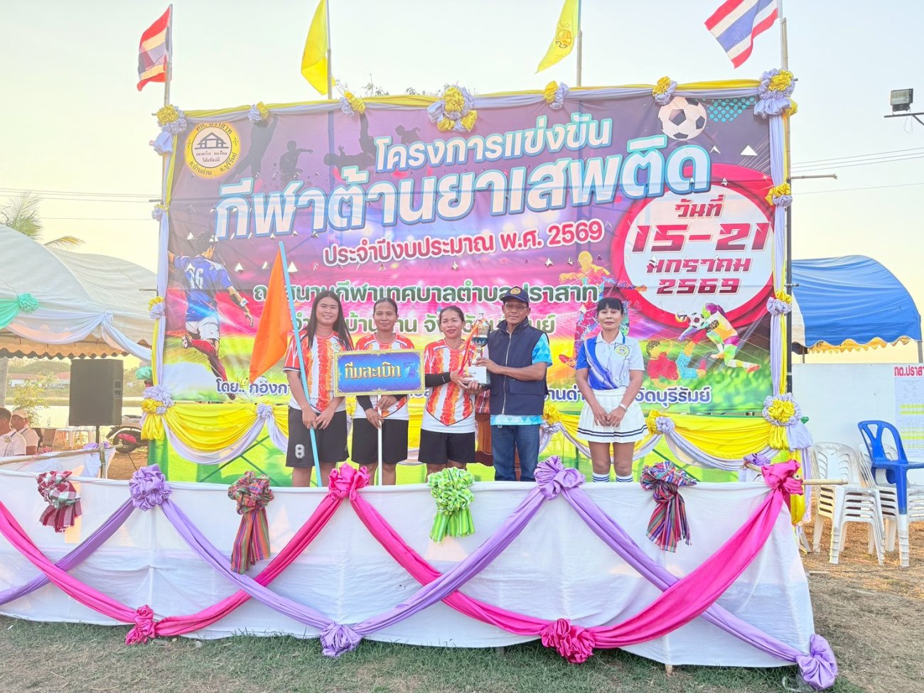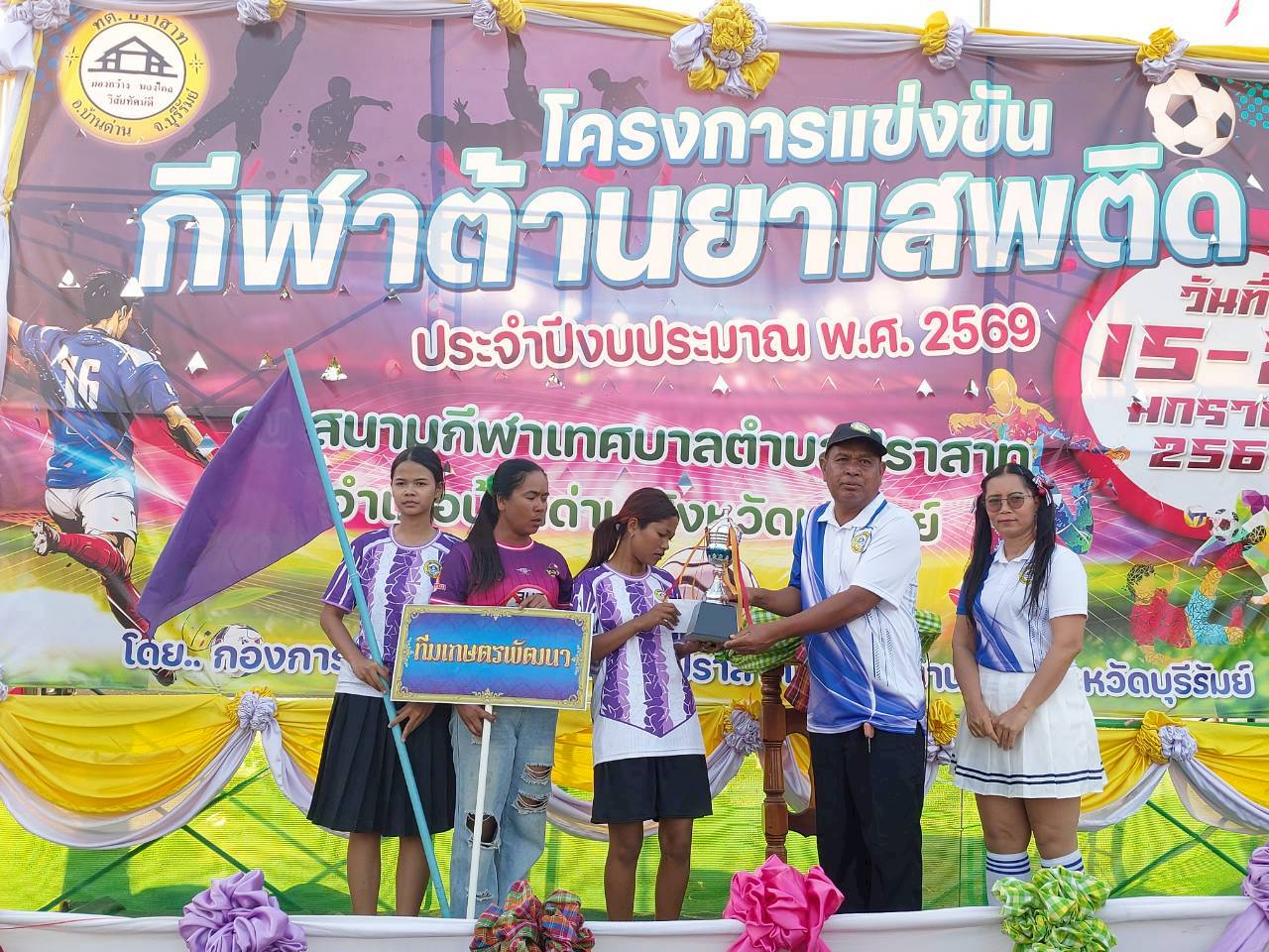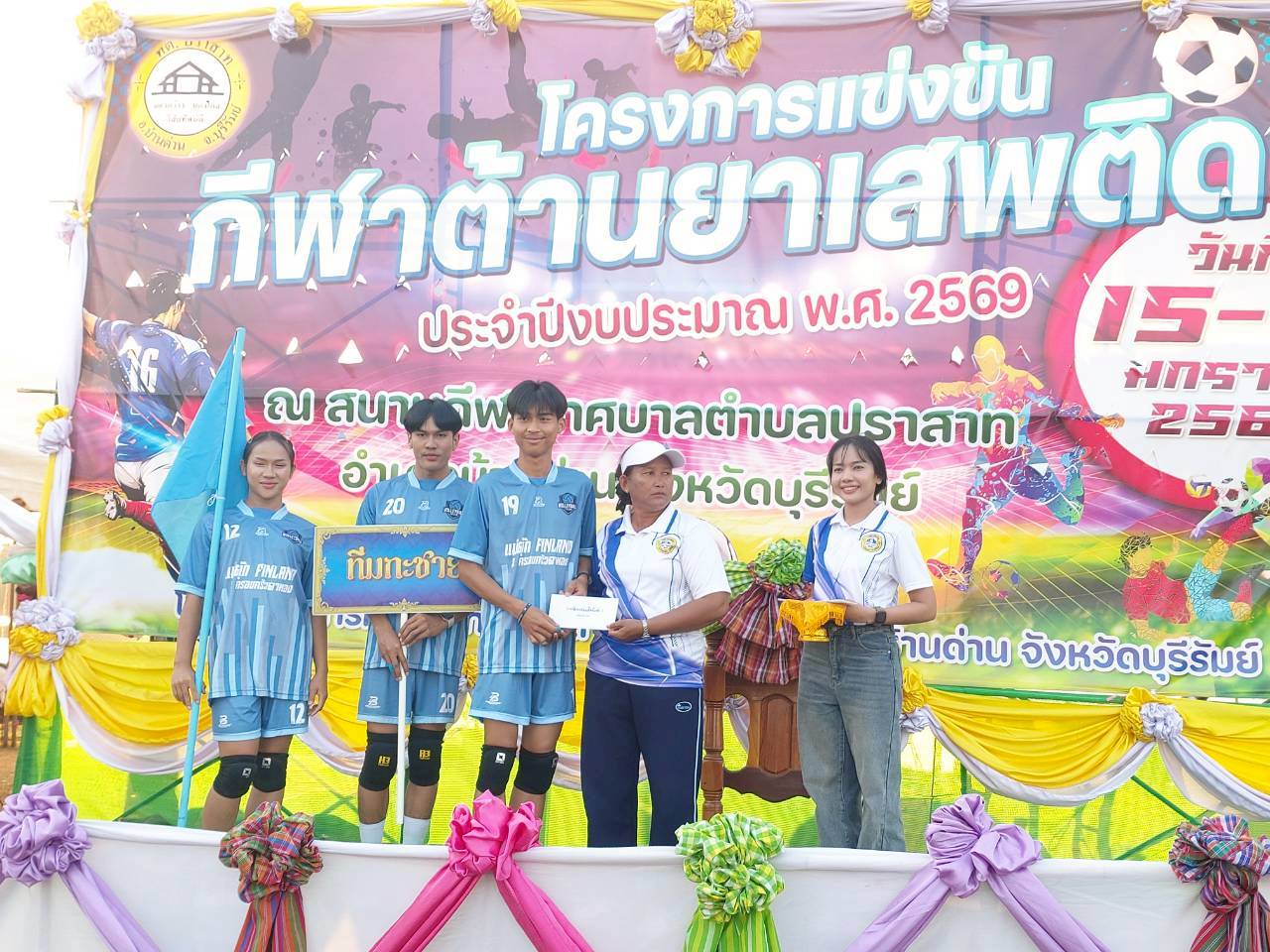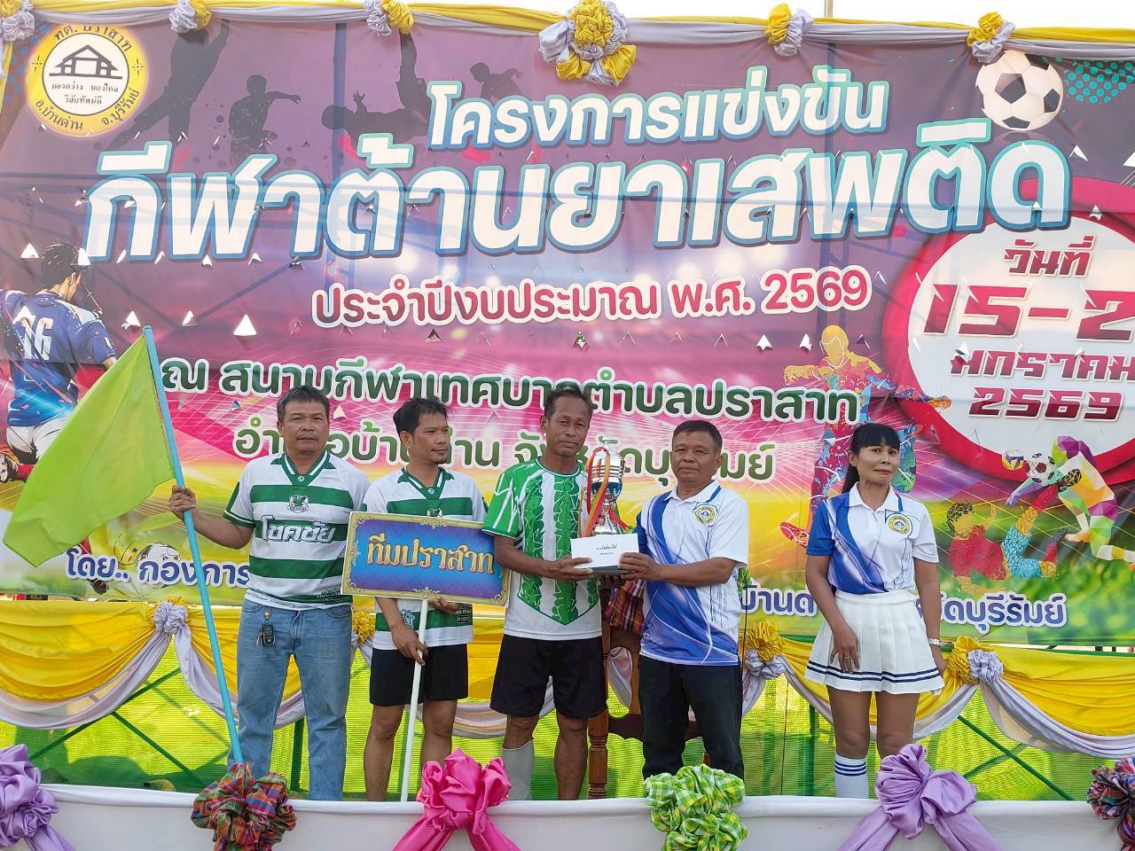 เมื่อวันที่ 21 มกราคม พ.ศ.2569          นายพนาพัฒน์  ชะลุนรัมย์ นายกเทศมนตรีตำบลปราสาท ประธานจัดการแข่งขันกีฬาต้านยาเสพติดตำบลปราสาท  ได้กล่าวรายงานผลการดำเนินการจัดโครงการแข่งขันกีฬาต้านยาเสพติด  โดย นายกิตติวัฒน์ ปิติเรืองสิทธิ์ รองปลัดเทศบาล ปฏิบัติราชการแทน ปลัดเทศบาลตำบลปราสาท พร้อมด้วยคณะผู้บริหาร  สมาชิกสภาเทศบาล หัวหน้าส่วนราชการ พนักงานเทศบาลตำบลปราสาท กำนัน ผู้ใหญ่บ้าน ทั้ง 18 หมู่บ้าน และนักกีฬาตำบลปราสาท ให้เกียรติร่วมพิธีปิด "โครงการแข่งขันกีฬาต้านยาเสพติดตำบลปราสาท ประจำปีงบประมาณ 2569          ในการแข่งขันกีฬาต้านยาเสพติดตำบลปราสาท ประจำปีงบประมาณ 2569 นี้  ในระหว่างวันที่ 15-21 มกราคม 2569 ณ สนามกีฬาเทศบาลตำบลปราสาท อำเภอบ้านด่าน  จังหวัดบุรีรัมย์  ซึ่งได้ดำเนินการจัดการแข่งขันเสร็จสิ้นเป็นที่เรียบร้อย และเป็นไปตามวัตถุประประสงค์ทุกประการ